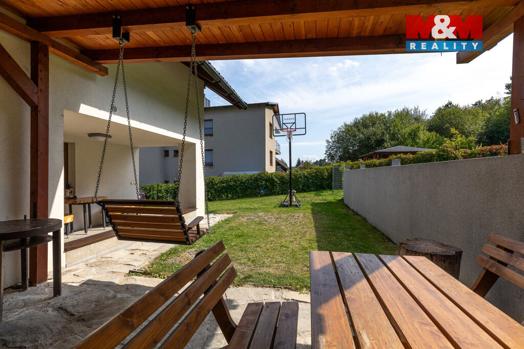 Součástí zahrádky je kryté posezení, opalovací terasa a nová, zděná víceúčelová přístavba, která může naplnit i ta nejtajnější přání.