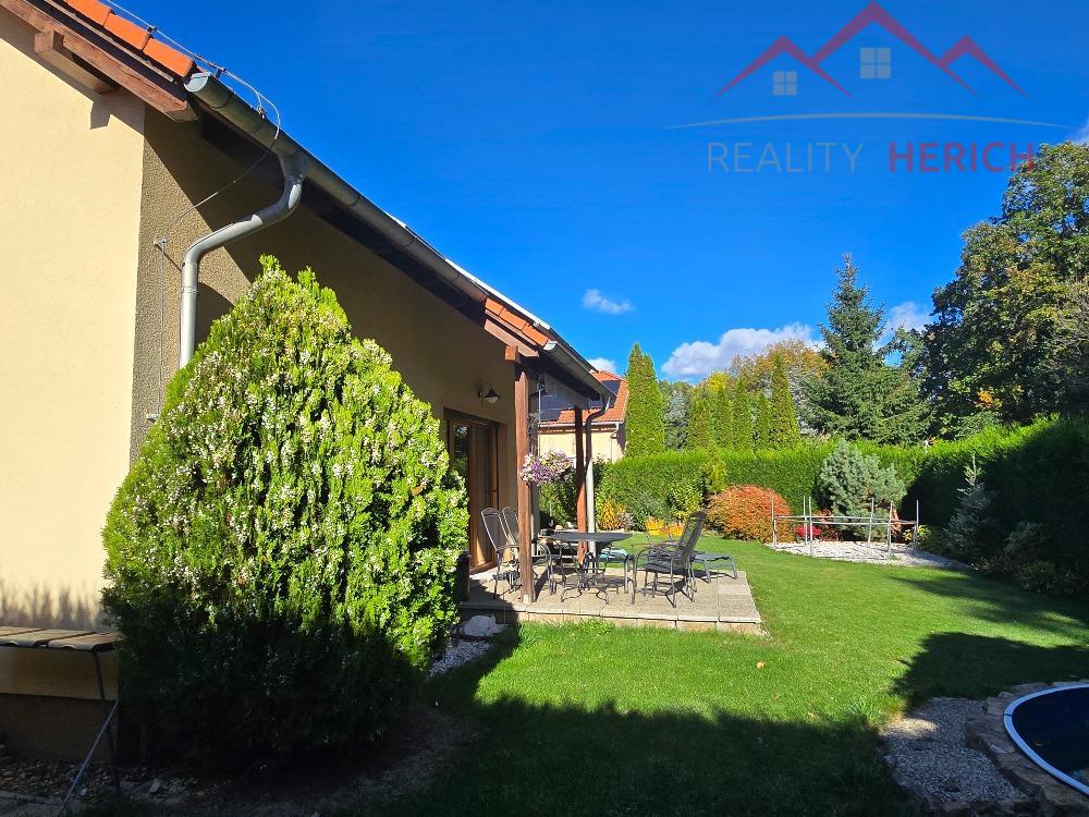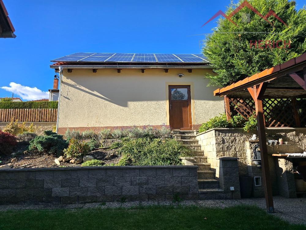 Nabízíme Vám k prodeji samostatně stojící jednopodlažní rodinný dům 4+KK s obytným podkrovím s garáží, terasou, pergolou a bazénem, v ulici Jižní v Mostě.
