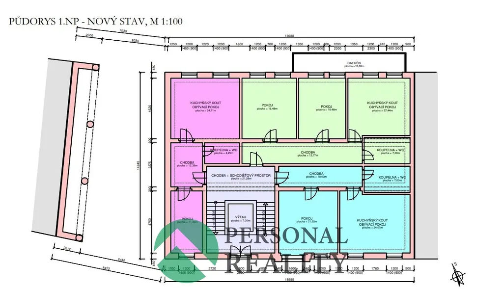 17 BJ ve stávajícím objektu (1+1 až 3+kk).