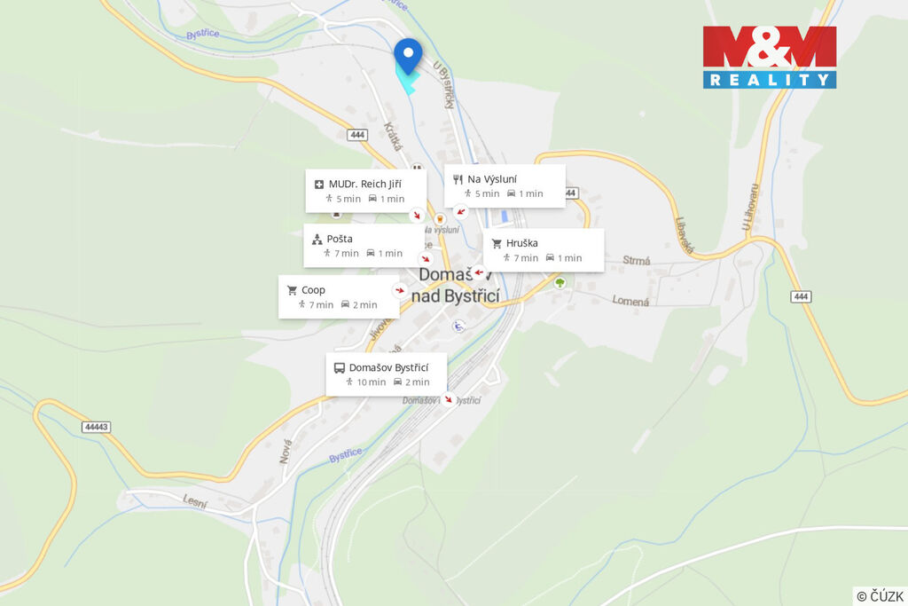 Nabízíme k prodeji pozemek k bydlení v obci Domašov nad Bystřicí o celkové výměře 1623 m². Pozemek je vhodný nejen k výstavbě, ale díky prostředí, ve kterém se nachází i případně k rekreaci. Na pozemku je postavena dřevěná chata, skládá se z předsíně a jedné místnosti, vhodná k rekreačním účelům. Oplocený pozemek je umístěn v klidné časti obce, je osázen plodícími ovocnými stromy, je zde také zeleninová a okrasná zahrádka. Dle územního plánu je pozemek veden jako plocha BI - bydlení individuální v rodinných domech. Inženýrské sítě - elektřina se nachází pár metrů od hranice pozemku. Příjezd obecní až k pozemku. Kanalizace je v obci řešena septiky. Pro více informací neváhejte kontaktovat makléře nabídky. Zajistíme také nejvýhodnější financování nemovitosti.