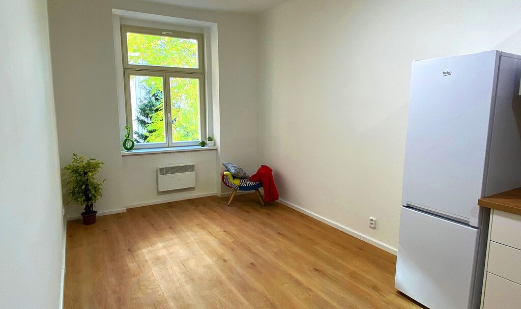Bulharská, Vršovice – Útulný byt 2+kk po rekonstrukci s nízkými náklady a s okny do klidného a zeleného vnitrobloku.