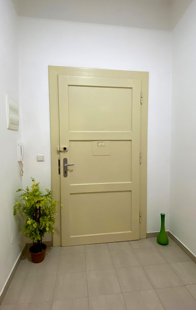 Okna bytu směřují do klidného vnitrobloku, což zajišťuje naprostý klid a soukromí. K bytu náleží i sklepní kóje. Parkování je možné přímo na ulici před domem.