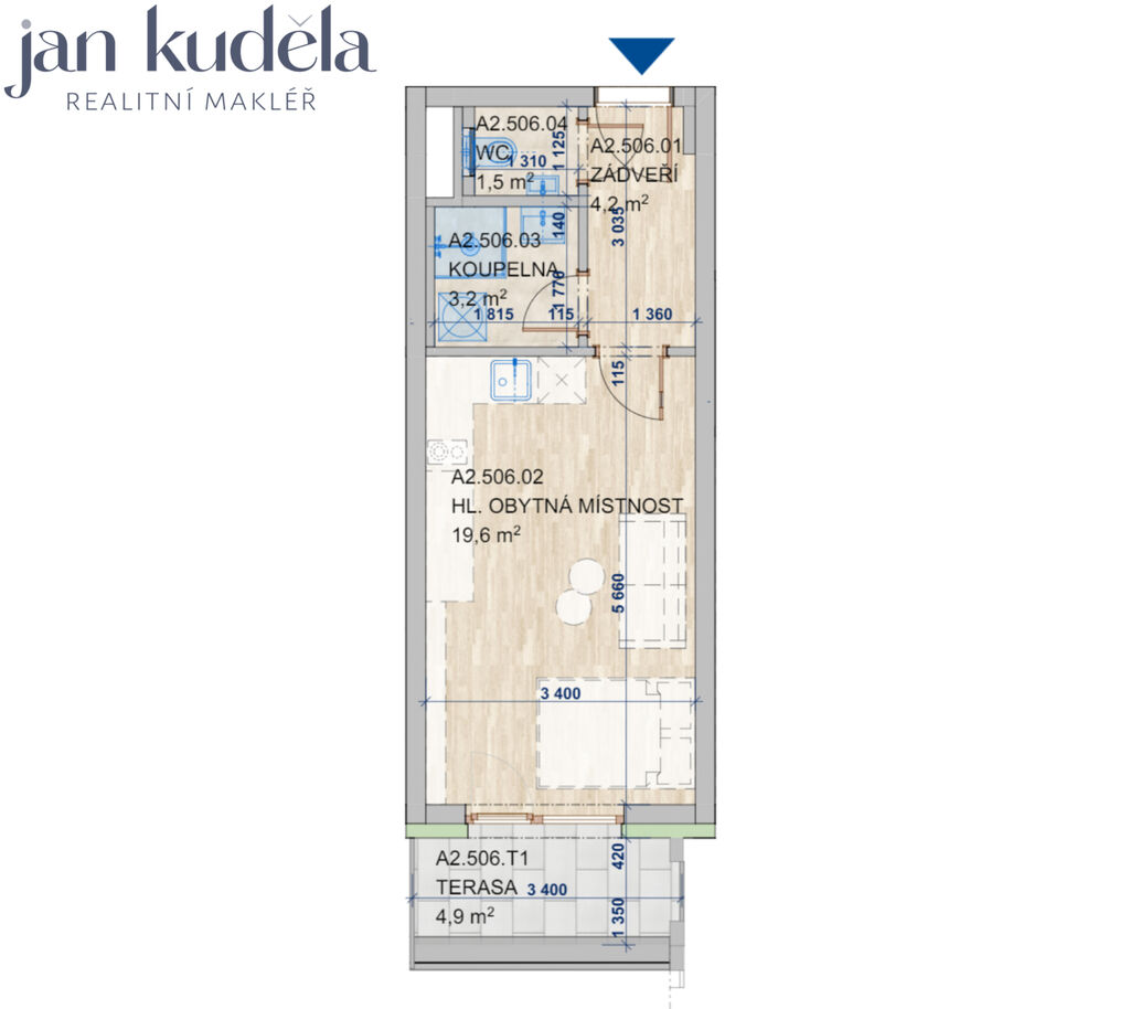 Byt doporučujeme pro jednotlivce či pár hledající moderní a klidné bydlení s výbornou dostupností do centra.