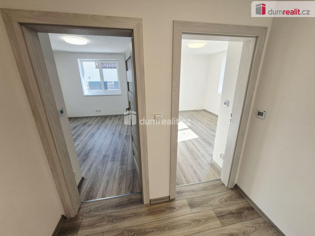 Vytápění je řešeno celoplošným podlahovým vytápěním HEATFOLIE a ohřev teplé vody bojlerem, umístěným za menším pokojem, který jde využít například jako pracovna, šatna nebo pokoj pro hosty. Pokoje nejsou průchozí.