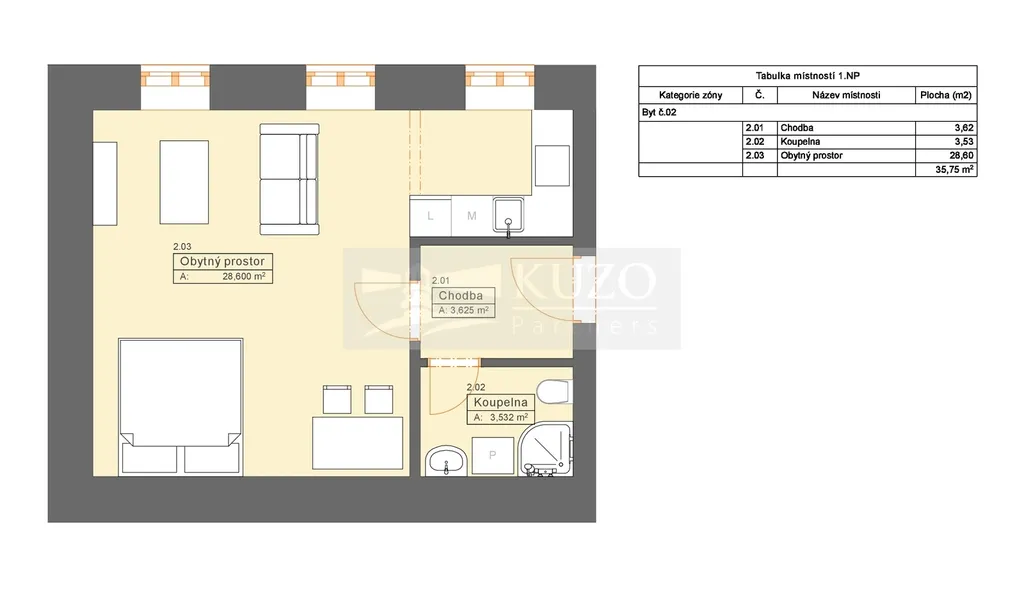 • Byt o výměře 36 m² – cena 3.672.000 Kč