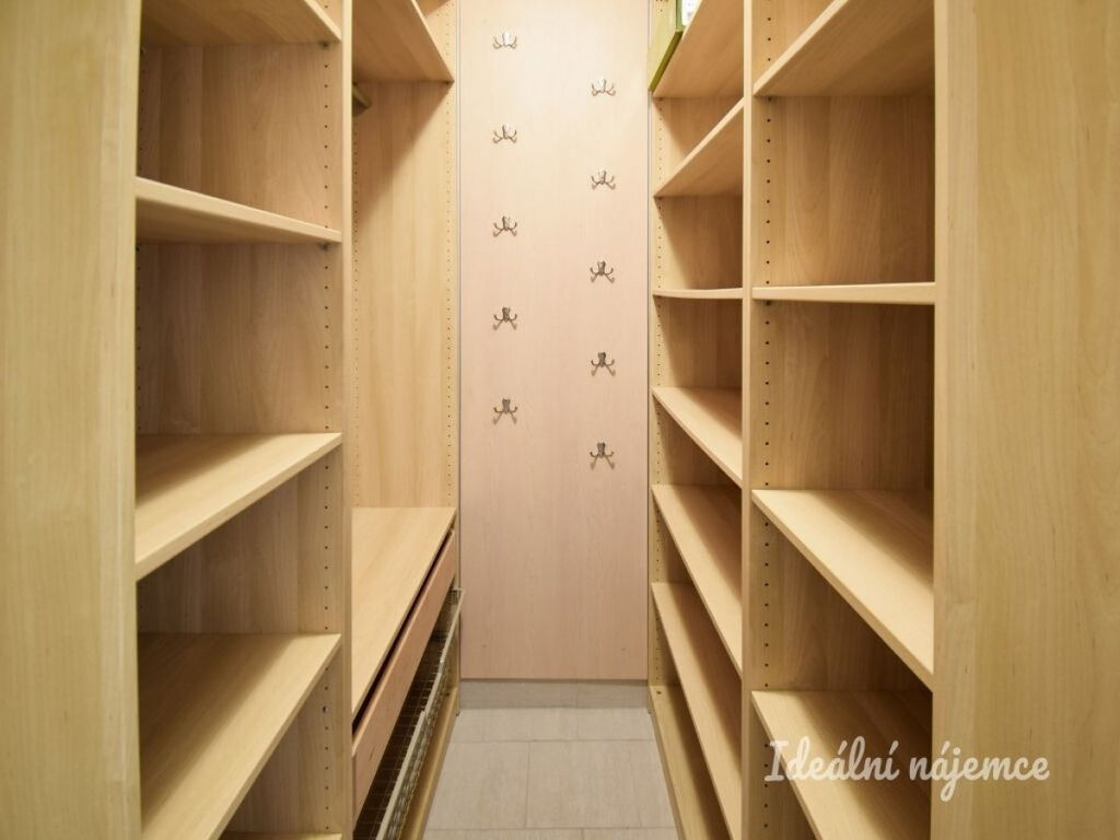 Byt se nabízí částečně vybavený. Kuchyně disponuje vestavěnou elektrickou a mikrovlnnou troubou, varnou deskou, myčkou a digestoří. Dále zde najdeme jídelní stůl s židlemi. Součástí obývacího pokoje je prostorná sedací souprava. Ložnice je zařízena úložnými skříněmi a okna jsou orientována na sever. Koupelna je vybavena vanou, umyvadlem a pračkou. Toaleta je oddělená. V předsíni jsou vestavěné šatní skříně a botník. Výhodou bytu je také Šatna s úložnými prostory na míru.