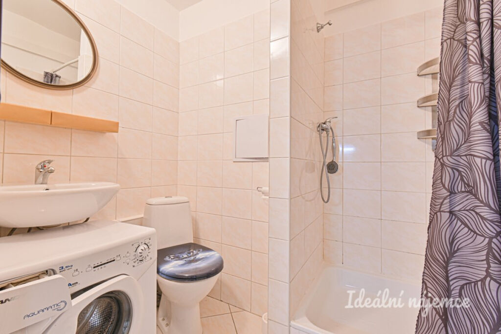 Příjemný byt 1+kk v Brně - Líšni. Byt se nachází v 1. podlaží bytového domu. V předsíni je umístěna kuchyňská lina vč. spotřebičů, koupelna se sprchou, pračkou, wc a umyvadlem.