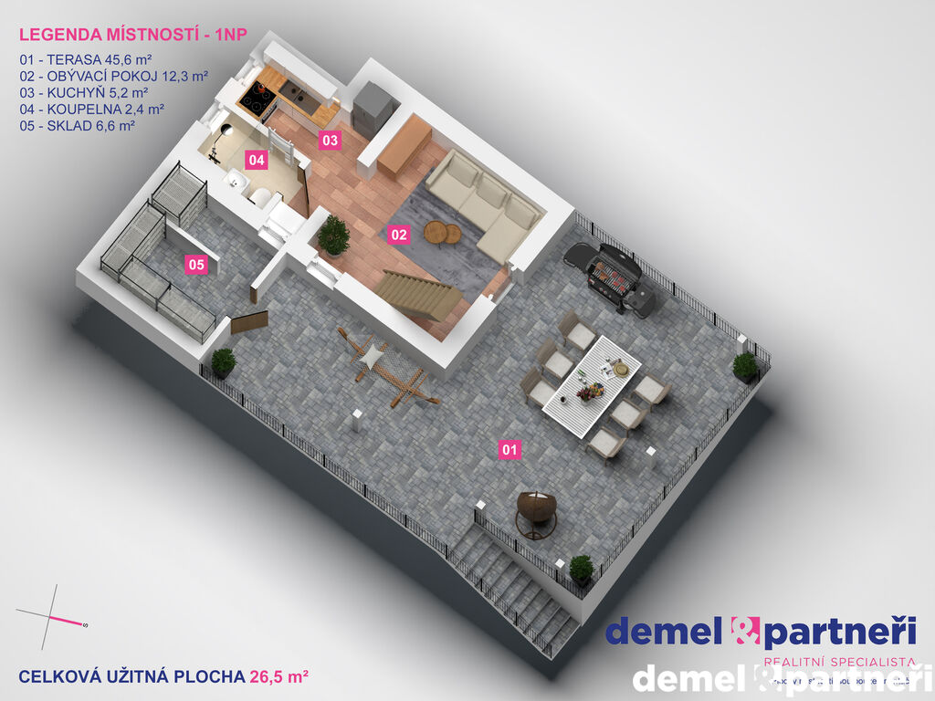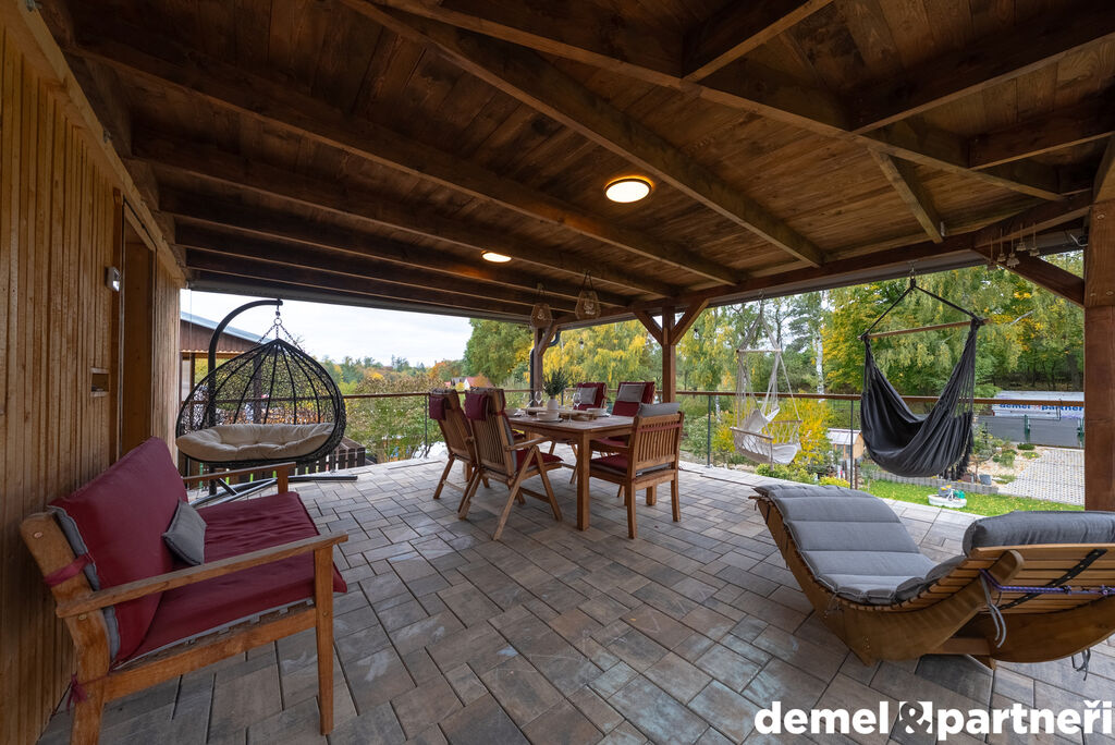 Zděná chata v ZK Libuše (za Poliklinikou) prošla před 3 roky kompletní rekonstrukcí. Na zastavěné ploše 118 m² na tebe bude čekat samotná chata s dispozicí 2+kk a užitnou plochou necelých 40 m². Kolem celé chaty je vydlážděná a prostorná pergola s elektrickým stíněním, kamerami a zabezpečovačkou. Uvnitř v přízemí najdeš obývací pokoj s kuchyňským koutem a koupelnu. V patře pak spatní.
