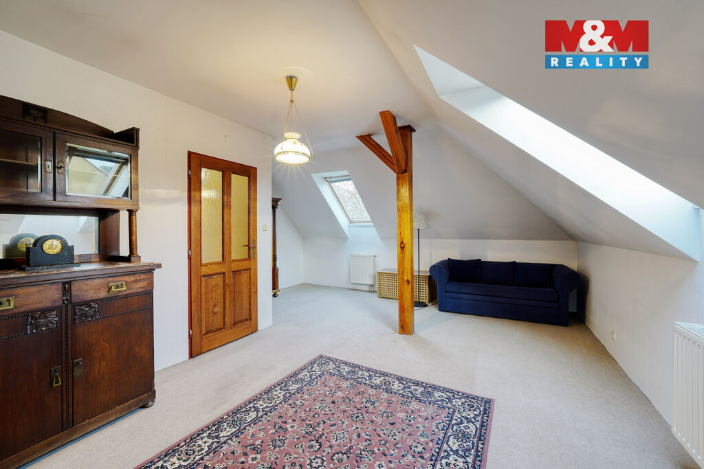 Hledáte místo pro komfortní život celé Vaší rodiny v tom nejvyšším standardu? Máme to pravé. Přinášíme Vám možnost koupi vícegeneračního RD v perfektním stavu s udržovaným pozemkem (887m²), který poskytne dostatek soukromí pro relax i případné zahradničení. Najdete zde majestátní přízemí se salónem, obývacím pokojem s kuchyňským koutem, koupelnu, WC, komoru aj. V horním patře jsou pak samostatné pokoje, v nádherném designu. Další možnosti využití má samostatná část domu (s vlastním vchodem, kde najdeme hlavní pokoj, vedlejší místnost, koupelnu s WC), což může být využito buď pro část rodiny nebo klidně pro své podnikání (ordinace, kancelář, apod.). Dále zde samozřejmě je i zázemí pro Vaše hobby ve formě zahradního domku. Nemovitost je vytápěna plynovými kotli, částečně podlahovým topením, ohřev vody bojlery. Je samozřejmě napojena na vodovod (pro užitkovou vodu jsou zde také dvě studny) a na kanalizaci. Centrum klidné obce s krátkým dojezdem do Prahy