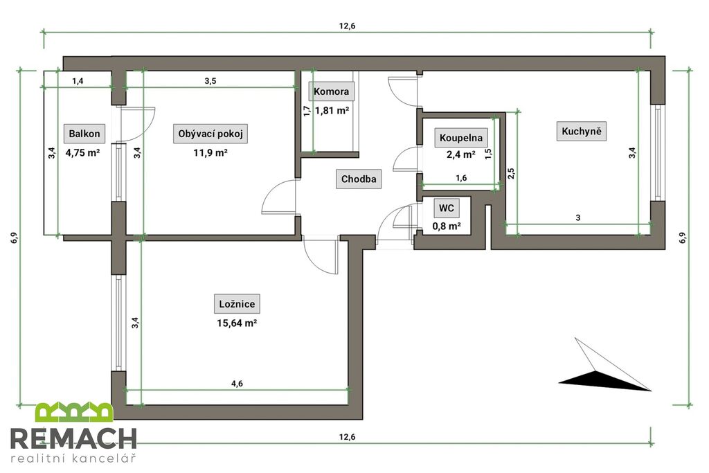 Zrekonstruovaný byt o dispozici 2+1 s rozlohou 56,8 m2, s balkonem o rozloze 5 m2 a velmi prostorným sklepem o rozloze 16 m2, umístění v lokalitě se spoustou zeleně, třemi dětskými hřišti a venkovním sportovištěm, umístěným ihned u domu.