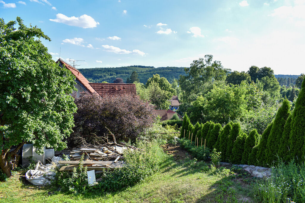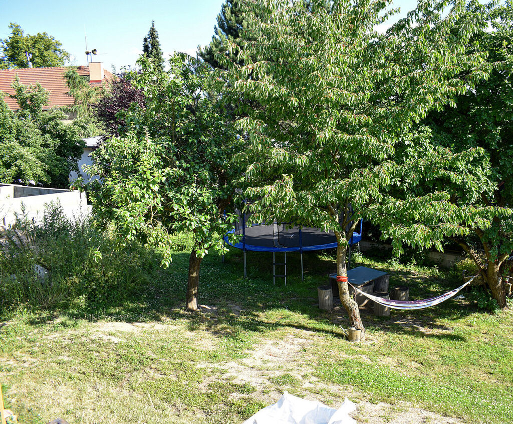 Zahrada se vzrostlými stromy poskytuje naprosté soukromí a je vhodná k zahradničení a trávení volného času.