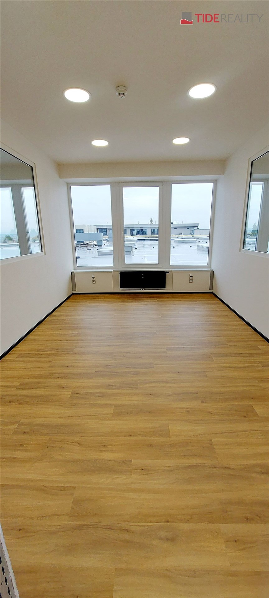 Nabízíme k pronájmu velmi světlé a prostorné kancelářské prostory v areálu v Modleticích. Kanceláře jsou po kompletní rekonstrukci a nachází se ve 3.patře s výtahem. Celková vnitřní plocha kanceláří je 147 m2 a je členěna na vstupní kancelář s malou, plně vybavenou kuchyňkou, 2 x WC, další 2 kanceláře a reprezentativní zasedací místnost ( kancelář) a malý oddělený archív. Všude jsou nové vinylové podlahy, klimatizace, venkovní elektricky ovládané žaluzie. Výhled přes střechu budovy do okolní krajiny. Součástí nájmu jsou 2 parkovací místa uvnitř areálu v ceně. Nájemné činní 43.400, Kč / měsíc + zálohy na služby 9.000, Kč / měsíc. V případě potřeby je možné si v přízemí pronajmout velmi prostorný sklad s příslušenstvím a malou kuchyňkou ( cca 100 m2), které však lze využít jako další kancelář s vlastním zázemím. Nájemné za tento skladový prostor činní 20.500, Kč / měsíc + záloha na služby 6.000, Kč. Oba prostory jsou volné ihned