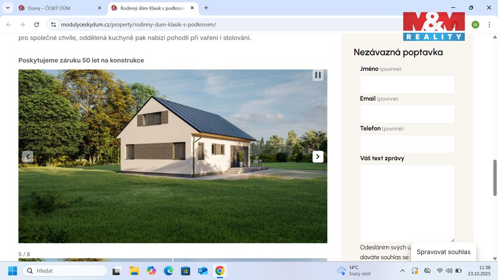 Dům je hotový do 2 měsíců od zahájení výstavby.
