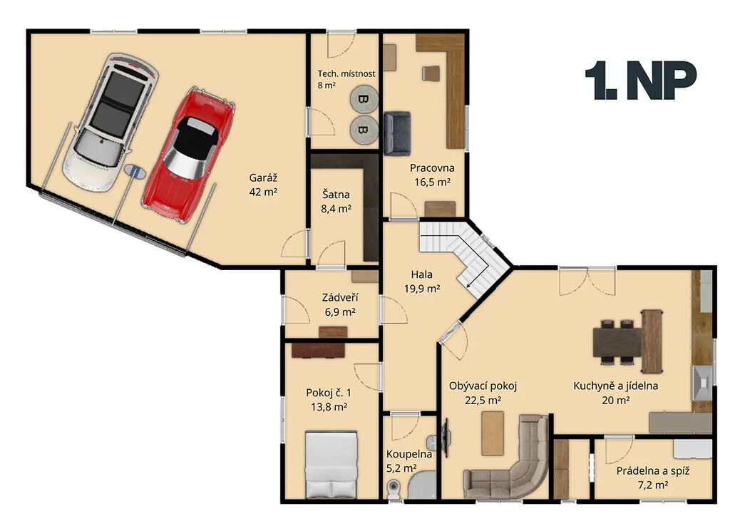 •Úsporné moderní technologie: FVE, tepelné čerpadlo, klimatizace, studna