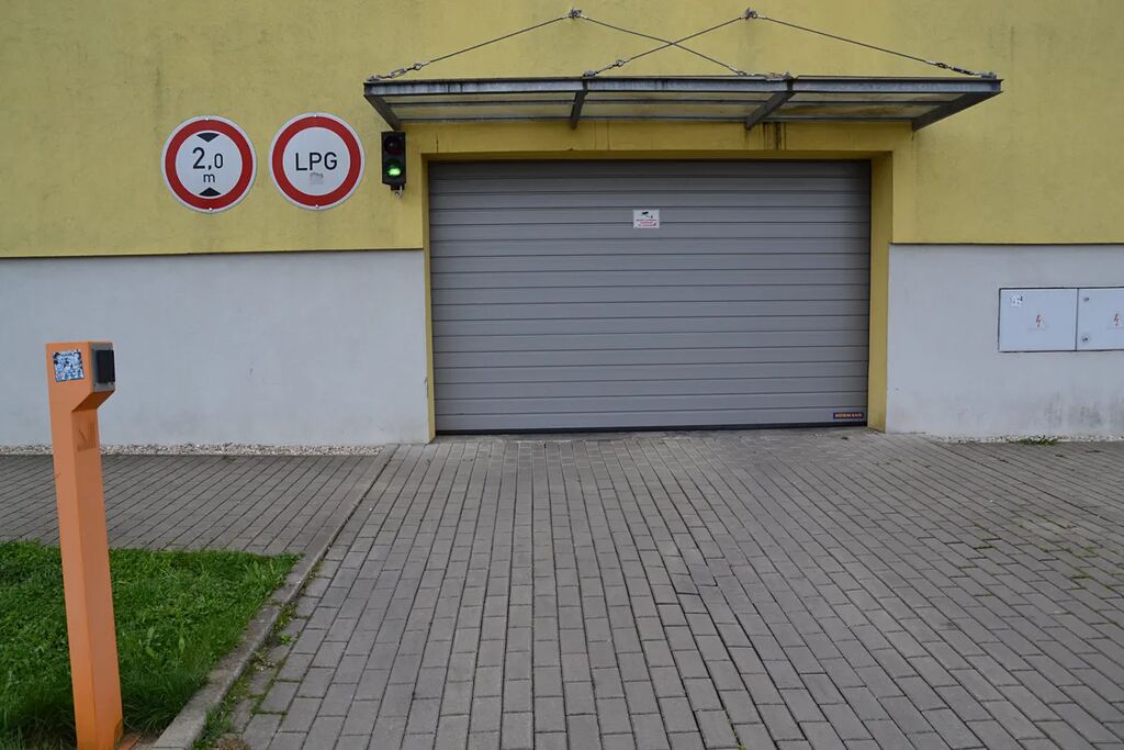 Garážové stání se nachází v 1.podzemním podlaží bytového komplexu postaveném v r. 2009. Vjezd do garáží je z boku komplexu pomocí automatických elektrických vrat ovládaných na čip. Maximální výška vozidla je 2m. V garážích jsou umístěné kamery. Měsíční poplatek je 353Kč (elektřina, pojištění, úklid...)