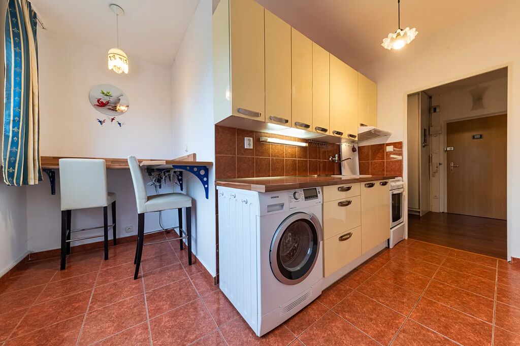 Byt se nachází ve třetím patře čtyřpodlažního domu a je částečně vybaven. Dálkové topení, dálkový ohřev vody.