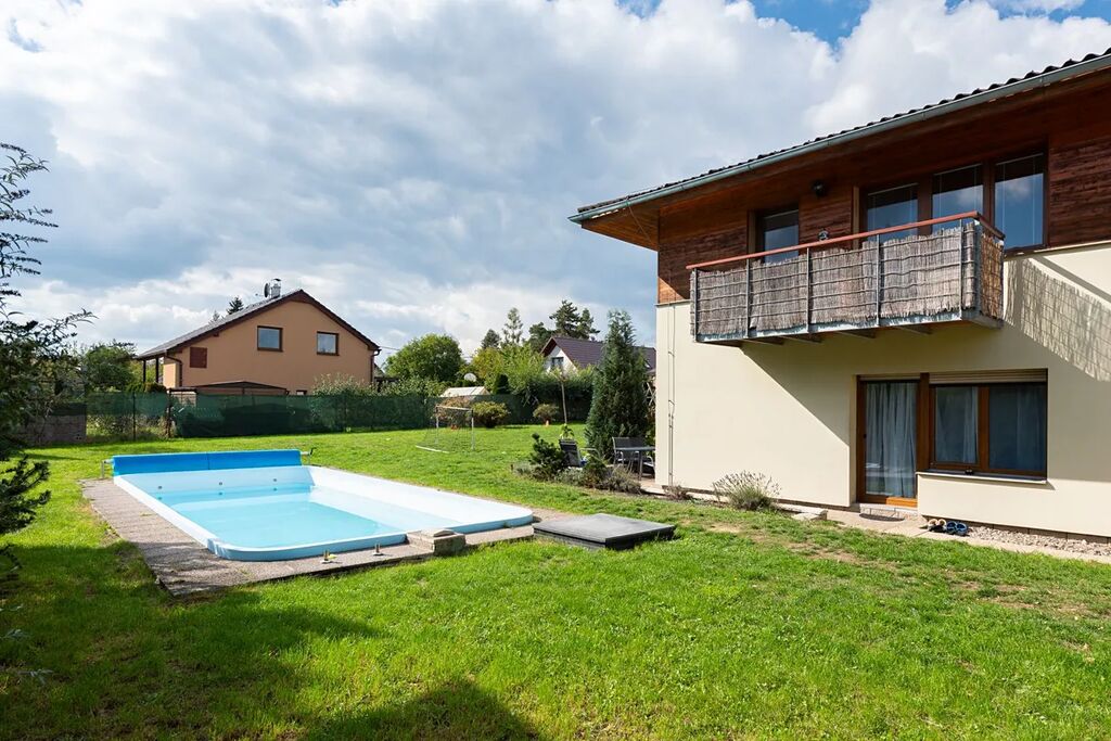 k dispozici celá zahrada s venkovním bazénem a dětským hřištěm –
