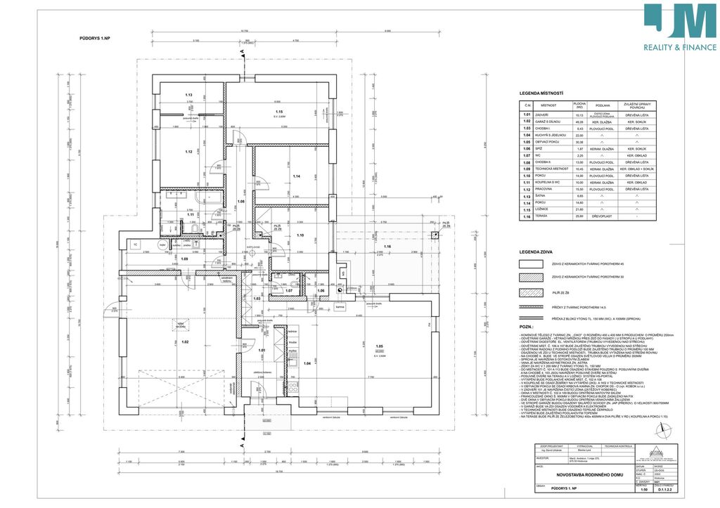 V ceně není: vybavení domu (zařizovací předměty, vnitřní dveře, koupelna, toalety, kuchyň), finální podlahy (např vinyl, dlažba), oplocení pozemku a dokončovací práce na pozemku.