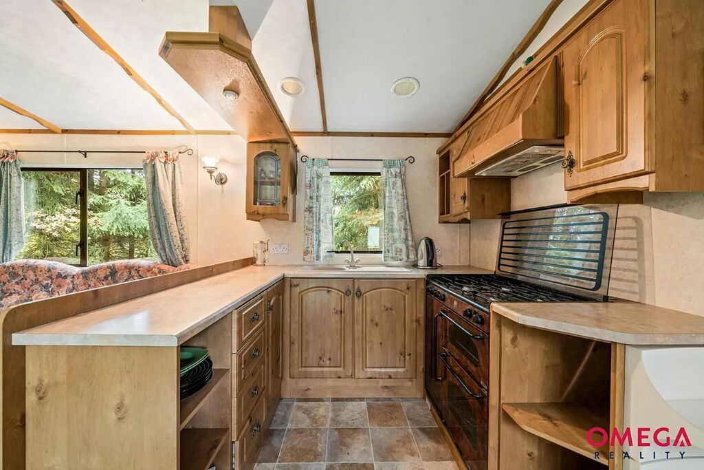 Mobilheim 4+kk – moderní, zateplený a plně vybavený. Má plastová okna s dvojskly, prostorný obývací pokoj s kuchyňským koutem, koupelnu se sprchovým koutem, samostatné WC a tři místnosti. Topení krbovými kamny na propan-butan.