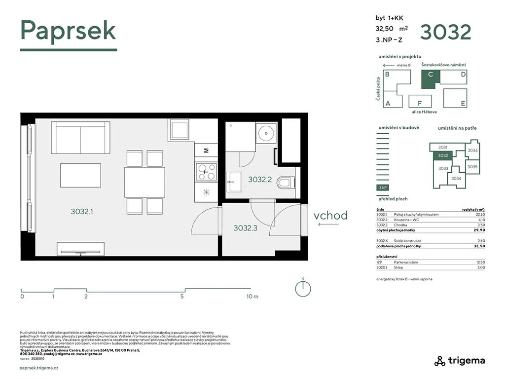 Dovolujeme si Vám nabídnout novostavbu družstevního bytu přímo na metru B Stodůlky o velikosti velkého 1+kk (byt 32,5 m2 + sklep 3,0 m2), který se nachází ve 3.NP budovy C v ulici Hábova. Dům postavila developerská společnost Trigema. Orientace bytu je na západ.