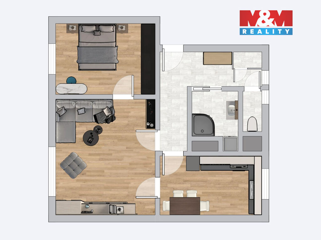 Byt je situován ve 3. patře cihlového domu. Byt prošel kompletní rekonstrukcí a je z velké části zařízený, což poskytuje ideální příležitost pro pohodlné bydlení.