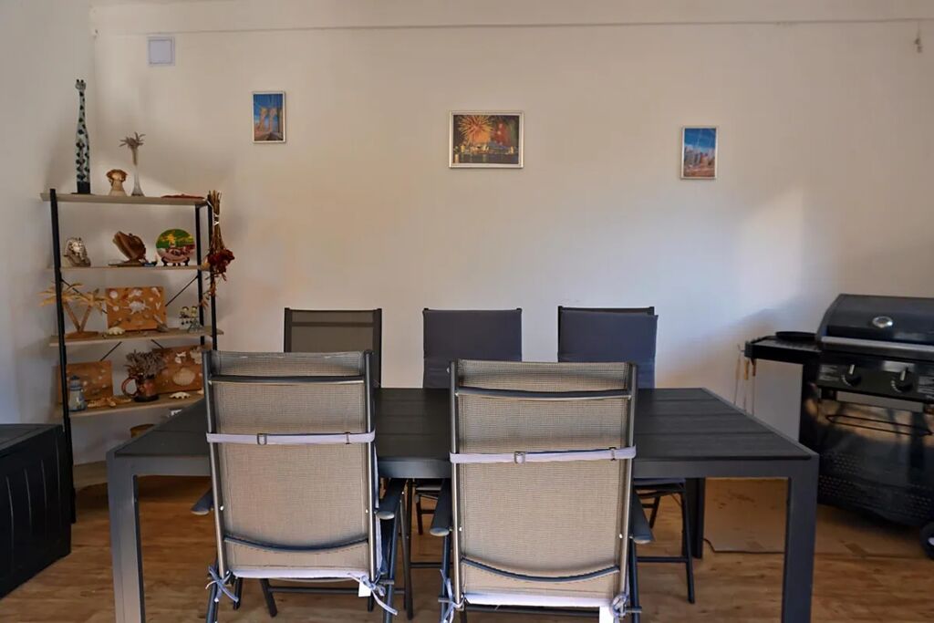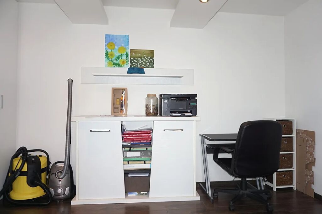 V přízemí najdete chodbu, kuchyni spojenou s obývacím pokojem, pracovnu, samostatné WC a koupelnu se sprchovým koutem. Z pracovny a obývacího pokoje je přístup na terasu, kde se nachází kryté posezení s grilem. Pod terasou jsou umístěny skladovací prostory a samostatná místnost sloužící jako letní kuchyně. V zastřešených prostorech je možné i parkovat osobní automobil.