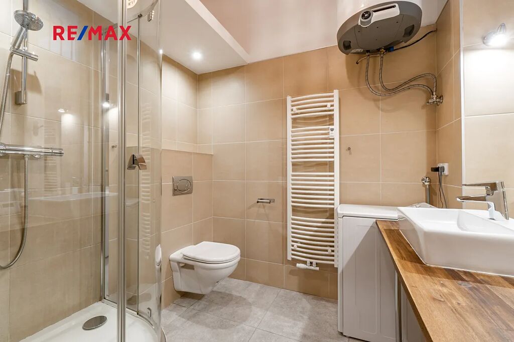 Topení je centrální, ohřev vody zajišťuje bojler umístěný v bytě.