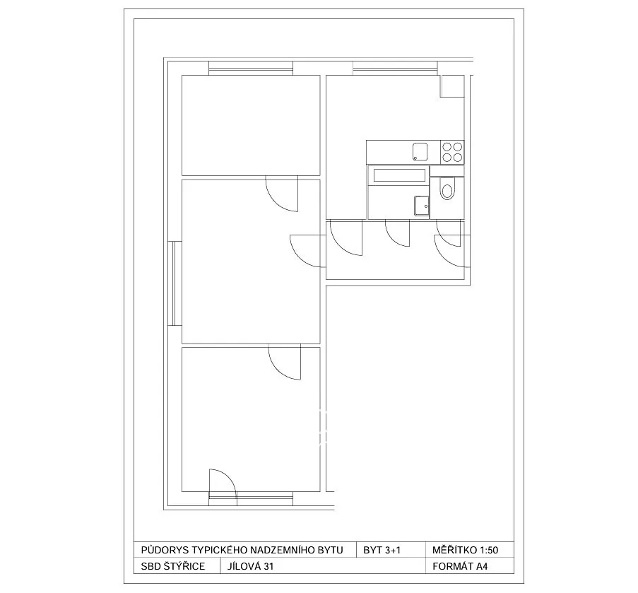 V exkluzivním zastoupení majitele nabízíme prodej bytu o dispozici 3+1 o celkové výměře 57 m2 včetně balkonu a sklepní kóje v blízkosti centra Brna.