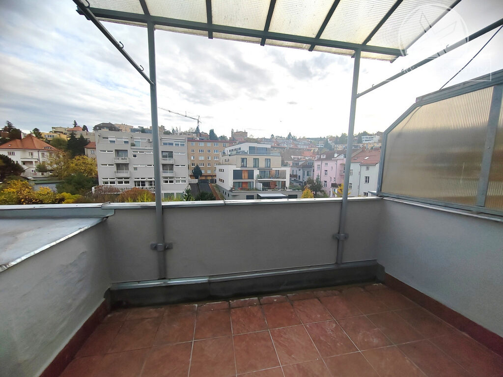 Jedná se o bytovou jednotku v 6. NP (posledním) v cihlovém domě s výtahem, s celkovou výměrou 52m², které tvoří dva neprůchozí pokoje (14 a 11m²), kuchyň (6,3m²), vstupní předsíň (4m²), koupelna (3,3m²), spíž (0,5m²) a v neposlední řadě dvě zastřešené terasy (8 a 5,25m²). K bytu patří také velký sklep (5,5m²) v suterénu domu. To vše v klidné ulici "Podolská", ve vyhledávané části Prahy 4 - Podolí.