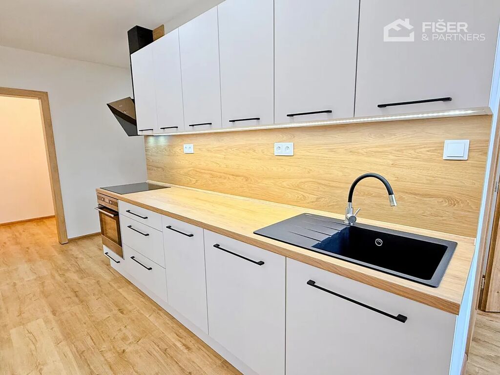 Nový interiér, kvalitní materiály, moderní kuchyň a koupelna. V ložnici bude nová velká vestavná skříň.