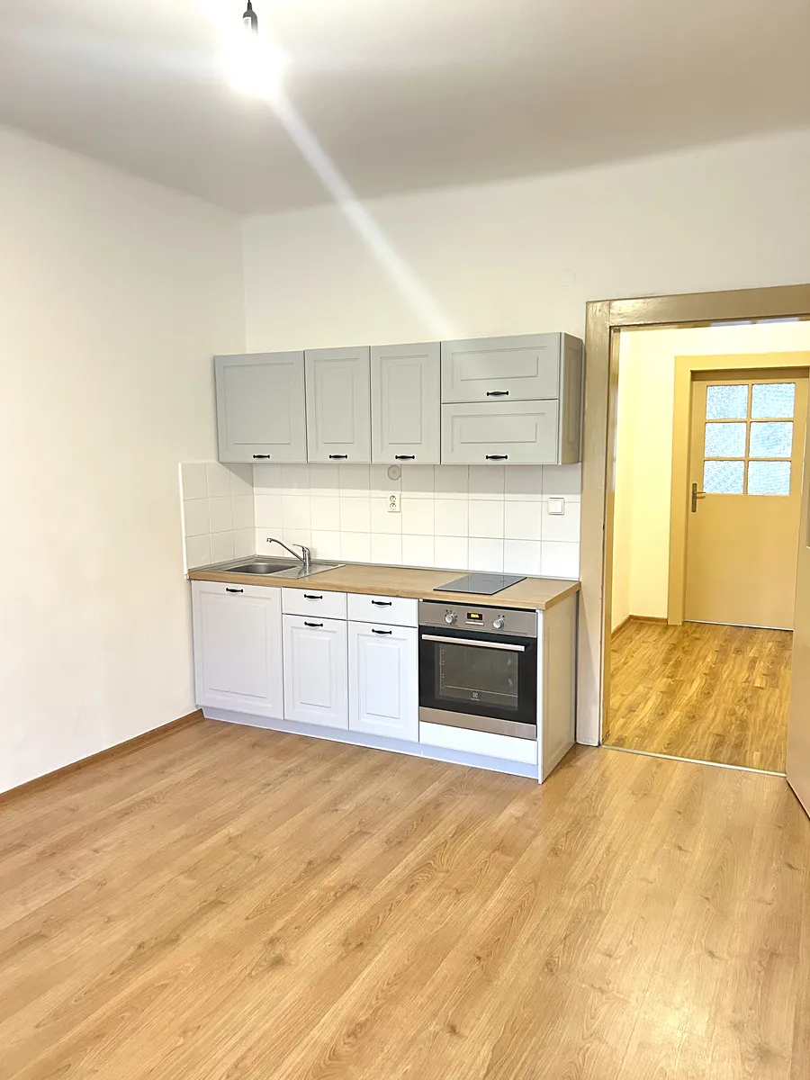 Byt leží v rozšířeném centru Plzně, má prostornou chodbu, samostatné WC, koupelnu se sprchovým koutem. Kuchyň vybavena kuchyňskou linkou, el. trouba, sklokeramická deska. Samostatný pokoj. Vytápění bytu obstará společná plynová kotelna a ohřev vody el. bojler.