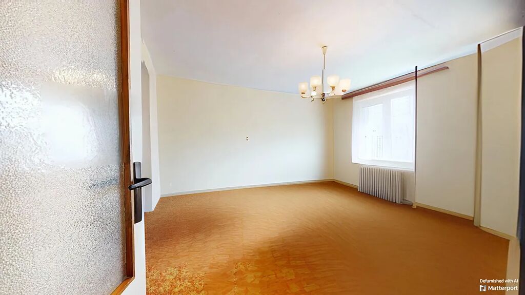 Byt má výměru 61,46 m² a je v původním stavu, ideální pro rekonstrukci. Zásadní výhodou je velmi praktické dispoziční řešení, kdy je ložnice chytře umístěna za obývacím pokojem – nabízí tak klid a soukromí i při každodenním provozu domácnosti.