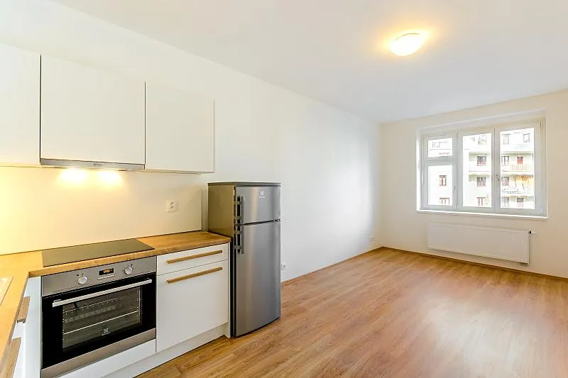 Nabízíme k dlouhodobému pronájmu , světlý  byt  1+kk  s oknem do zahrady  v žádané lokalitě na pomezí  Vinohrad a Vršovic  a klidné ulici Rybalkova, Praha 10 - Vršovice.  Byt se nachází  v  činžovním domě ve 3.podlaží  s výtahem  o rozloze 28,14 m² a bezprostřední   blízkosti známých  Havlíčkových sadů - Grébovky.  Byt se pronajímá nezařízený, ale vybaven kuchyňskou linkou se spotřebiči (horkovzdušná el.  trouba, sklokeramická varná deska, odsavač par, myčka, kombinovaná chladnička). V koupelně je sprchový kout a toaleta. Pračka není součástí pronájmu, ale je zde na ní připravena přípojka. Na podlahách byla použita dlažba, plovoucí podlaha. Nájemník může využívat  společnou  zahradu u domu. K bytu náleží sklepní koje. Byt je vhodný pro pár či jednotlivce. Klidná lokalita, pouze pár kroků od oblíbeného parku Grébovka, ve vyhledávané rezidenční lokalitě s rychlým spojením do centra a plnou vybaveností v blízkém dosahu, c ca 10 minut chůze ke stanici metra Náměstí Míru. V pěším dosahu stanice metra A Náměstí Míru.