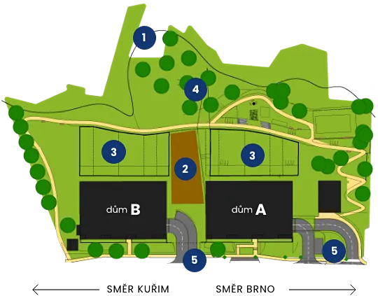 Projekt disponuje tepelným čerpadlem, panely - fototermika, dobíjecí stanice (Wall-boxy) pro elektroautomobily.
