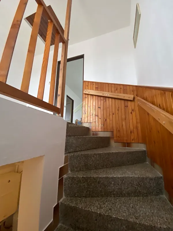 - V patře, do kterého se dostanete po schodišti ze vstupní chodby domu, se nachází 2 pokoje a jedna místnost, která byla původně zamýšlená jako kuchyň, ale není zbudovaná.