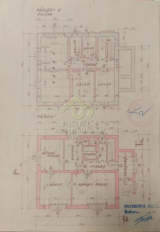 - Přízemní část domu je obytná a to vstup do zádveří, dále chodba, velký obývací pokoj, ze kterého se vstupuje do ložnice. Dále je zde samostatná kuchyně s potravinovou komorou a jídelna. Koupelna a samostatné WC.