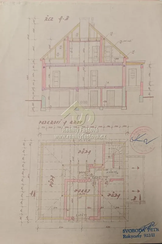 - v patře domu se nachází jeden dětský pokoj, ale vzhledem k velkému půdnímu prostoru je možnost rozšíření obytných prostor.