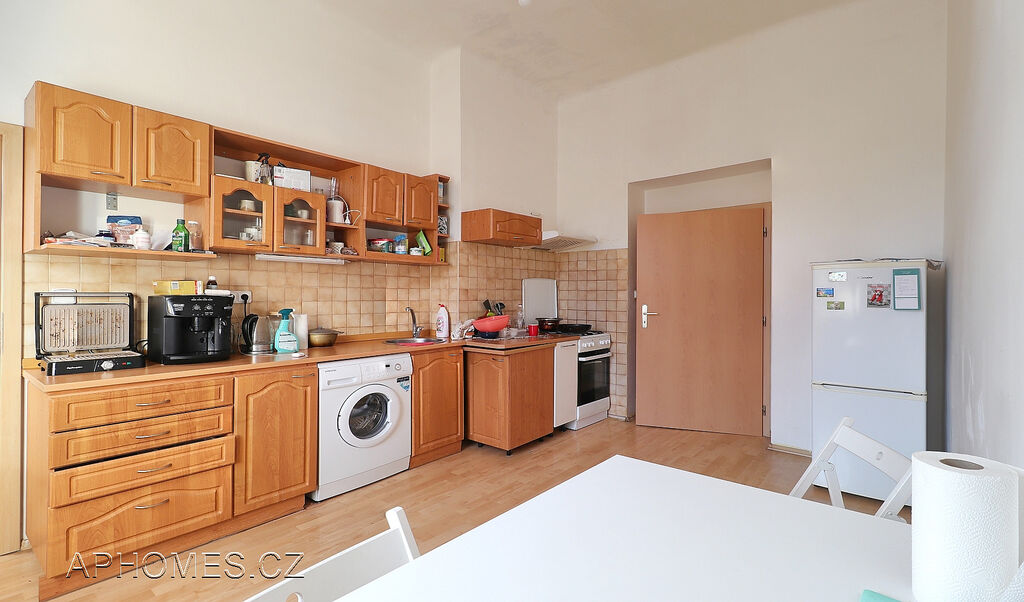 Součástí vybavení bytu je kuchyňská linka s elektrickým sporákem, troubou a digestoří. Lednice a pračka dle dohody.