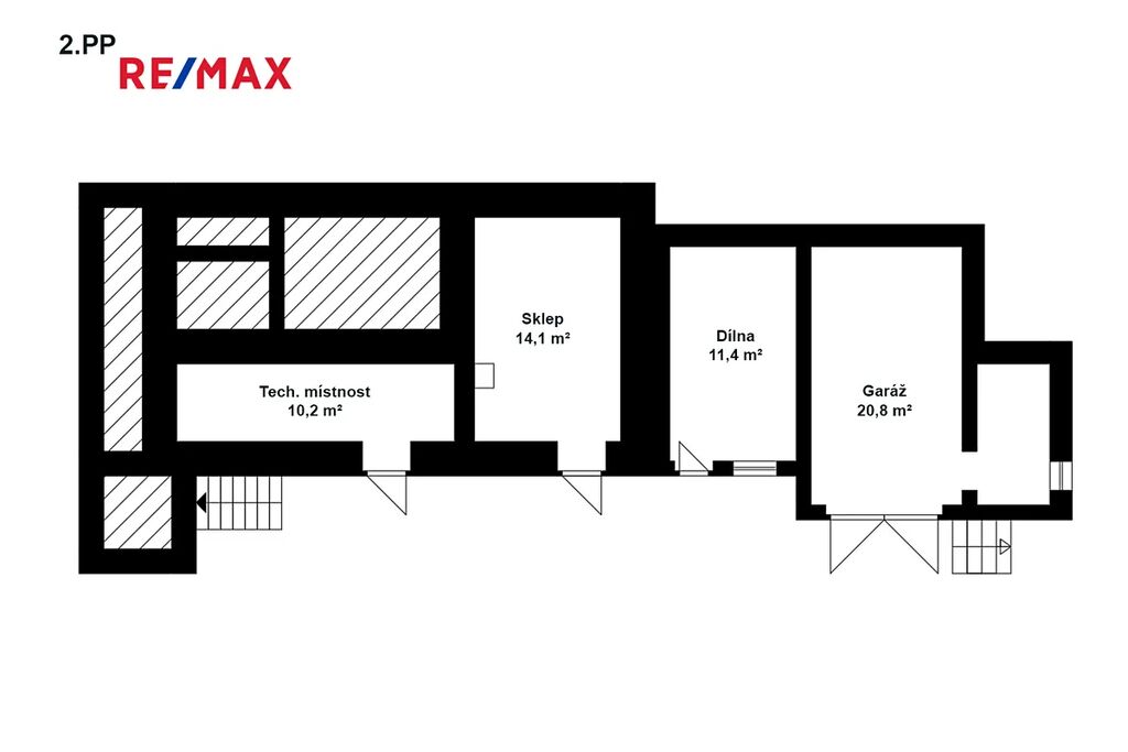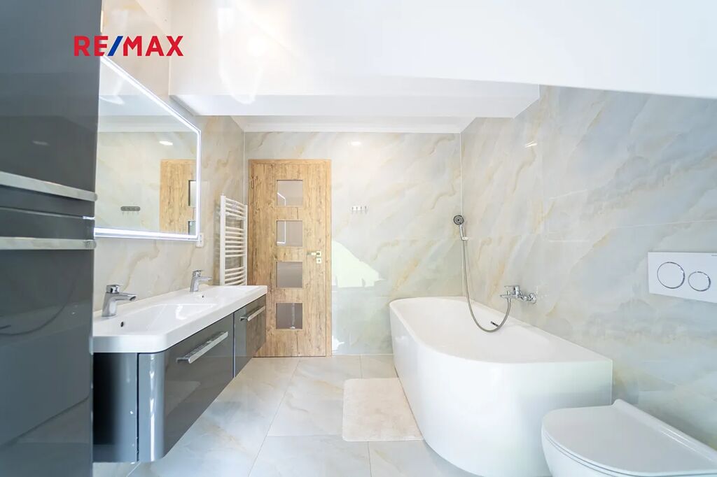 Ve druhém patře je prostorná pracovna, ložnice, 2 pokoje, 2 koupelny, 2 balkóny. Ve štítu je půda, kde je možné vybudovat další 2 místnosti, případně prostorný ateliér.