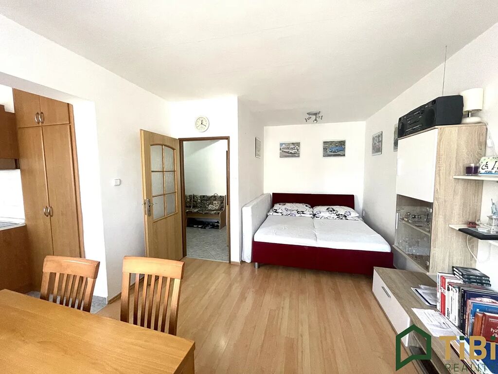 Samotný byt je nabízen zařízený, je možné se do něj hned nastěhovat. Dispozičně je řešen prostornou vstupní chodbou, obývacím pokojem s kuchyňským koutem a ložnicí. Náleží k němu balkon, lodžie a sklep.