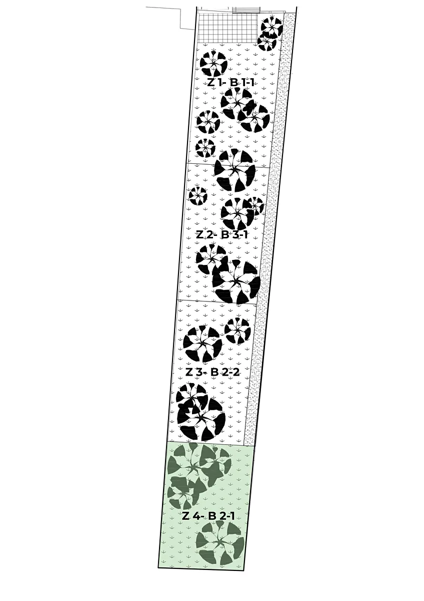Čtyři oddělené zahrady, každá k jednomu bytu, se nachází v přízemí domu v zadní části. Ať už budete zahradu využívat ke grilování, koupání, zábavě, relaxu, budete pěstovat vlastní zeleninu a ovoce, nebo pouze vysadíte trávník a květiny, vždy budete mít svůj vlastní kousek přírody.