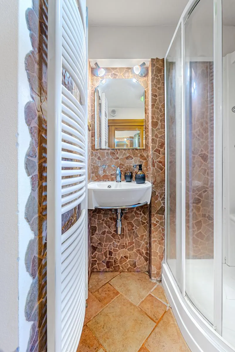 Vytápění je řešeno ústředním topením elektrokotlem nebo krbovými kamny s výměníkem.