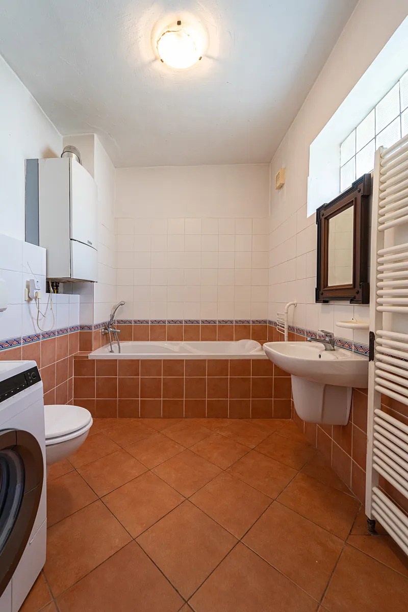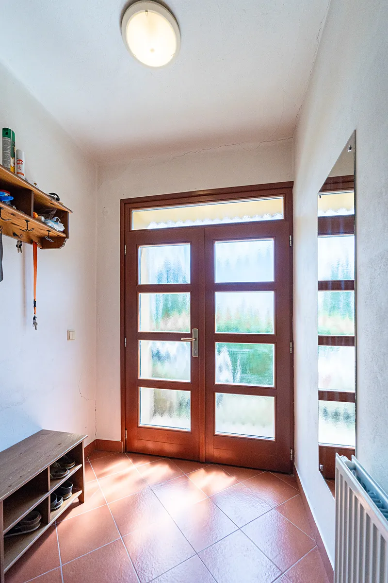 Na pozemku je k dispozici parkování pro pět vozidel. Aktuální vybavení domu zajišťuje pohodlné bydlení ihned po koupi, aniž by bylo nutné provádět další větší úpravy.