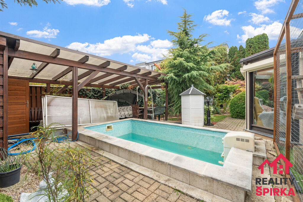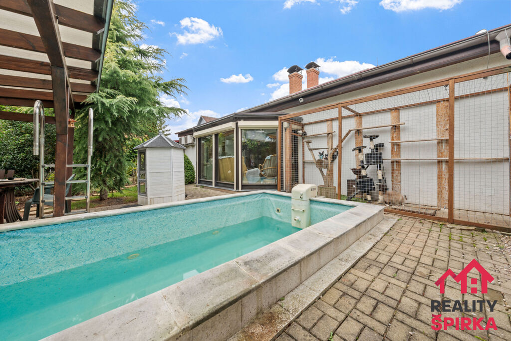 Nabízíme k prodeji velký rodinný dům o dispozici 5+2, který se nachází v klidné lokalitě obce Moravany, pouhých 15 minut od krajského města Pardubice. Celková plocha pozemku činí 787 m2 z toho zastavěná plocha má 331 m2 a užitná 275 m2. Dominantou domu je prostorný obývací pokoj se zimní zahradou a krbovými kamny. Součástí dispozice jsou 4 ložnice, 2 kuchyně a nechybí ani 2 koupelny - jedna s vanou a toaletou, druhá se sprchovým koutem, toaletou a infračervenou saunou. Vytápění zajišťuje elektrická energie včetně podlahového vytápění, tepelné čerpadlo (z roku 2017) a fotovoltaické panely zn. Fronius, které přispívají úsporám na provozních nákladech. Podlahy kombinují dlažbu a plovoucí podlahu, což dodává interiéru útulnost i praktičnost. Dům je napojen na elektřinu a obecní vodovod, k dispozici je také vlastní studna, přičemž plynová přípojka se nachází u domu. Na pečlivě udržované zahradě o rozloze 456 m2 najdete ideální prostor pro relaxaci i volný čas – nechybí pergola, zahradní domek se saunou, ani bazén s protiproudem, a společné grilování s přáteli si zde také užijete. At už jste velká rodina nebo hledáte ideální řešení pro dvougenerační bydlení, tento dům vás nadchne svou prostorností, promyšleným uspořádáním a klidným okolím. Pokud toužíte po moderním bydlení s výbornou dostupností do Pardubic, dům v Moravanech je tou pravou volbou.