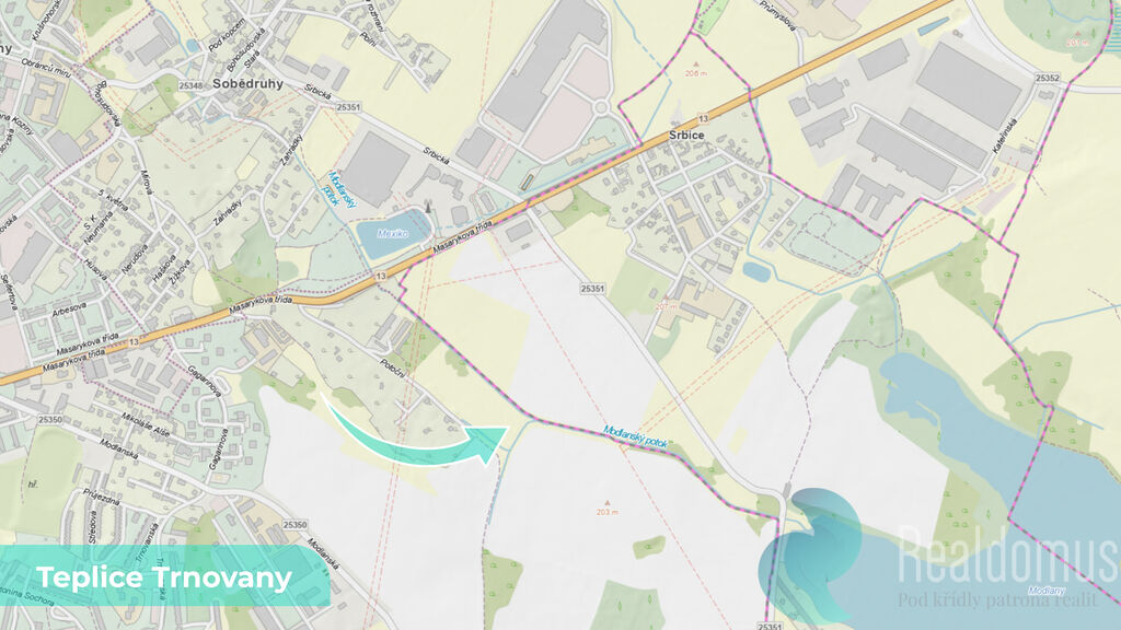 Pozemky tvoří souvislý celek podél Modlanského potoka a navazují na zastavěnou část města Teplice i sousední obec Srbice.