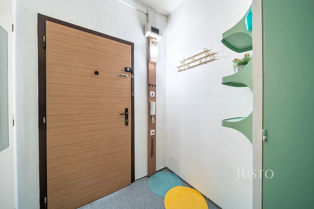 K bytu náleží sklepní kóje, dům má výtah a udržované společné prostory. Z lodžie je příjemný výhled do zeleně.