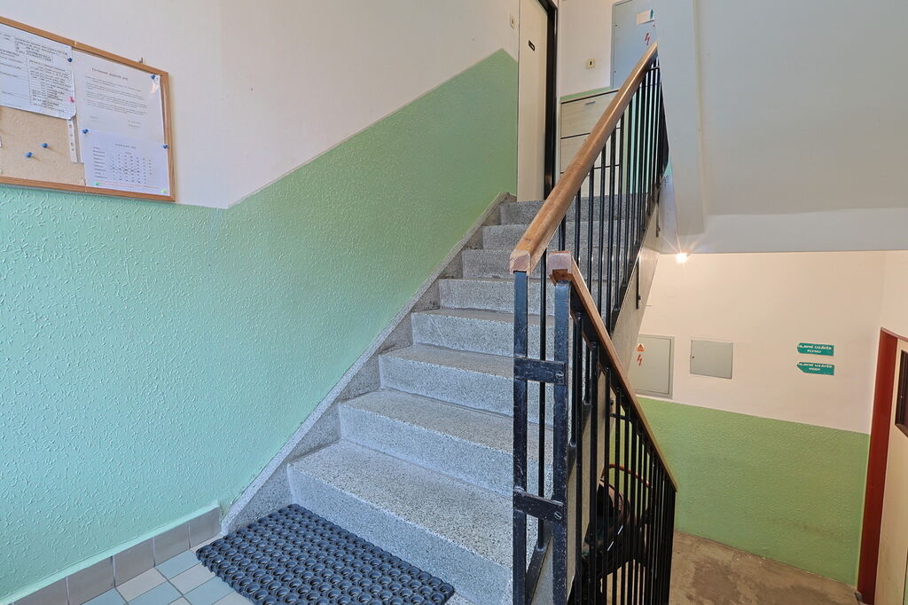 Byt se nachází ve zvýšeném přízemí v nízkopodlažním bytovém domě v klidné ulici s dostatkem zeleně.