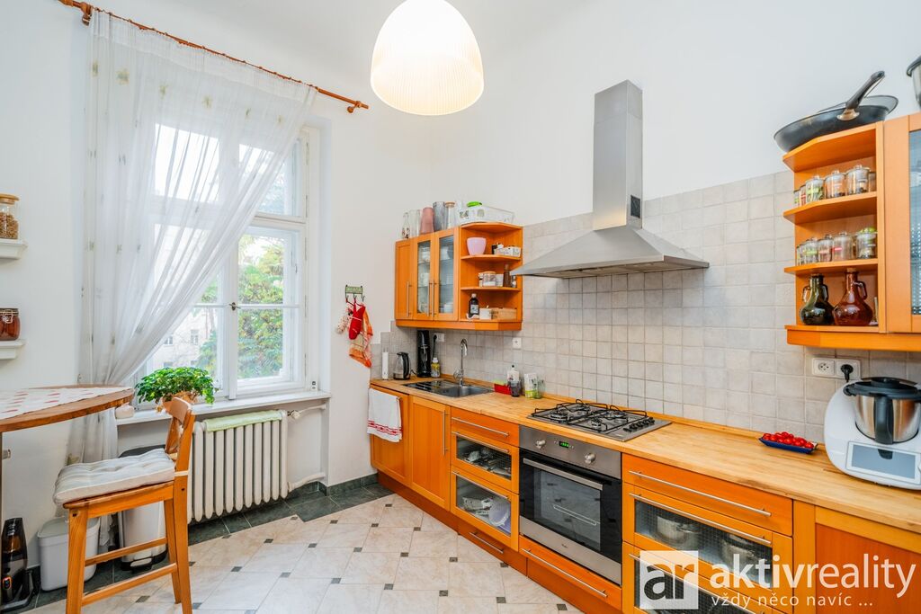 Vysoké stropy, velká okna ( v prosinci proběhne výměna oken ), parkety, bezpečnostní vstupní dveře. K bytu náleží velký sklep 12 m2.