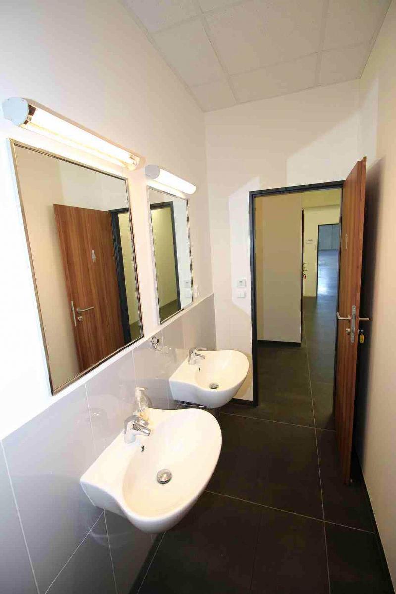 Jedná se o prostory v novostavbě víceúčelové budovy o celkové velikosti přízemí 1802 m2, určeno pro využití jako sklad, popřípadě výroba. Rolovací vrata, halog. osvětlení, vytápění plynové výměníky ( foto ), WC, kuchyňka, šatny. Nosnost podlah v objektu skladu min. 10t/m2.