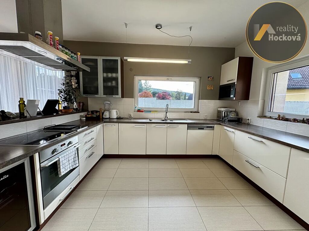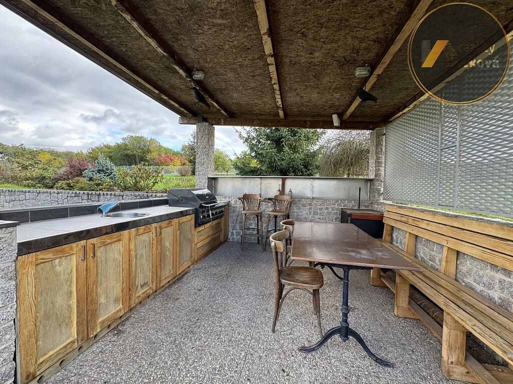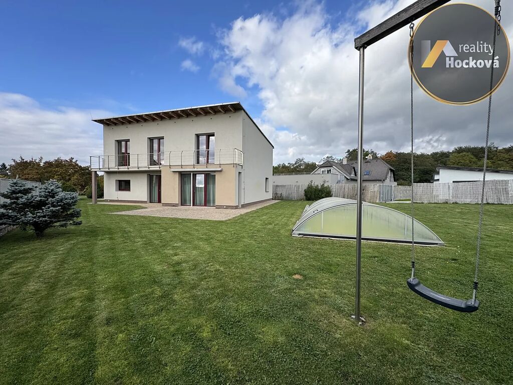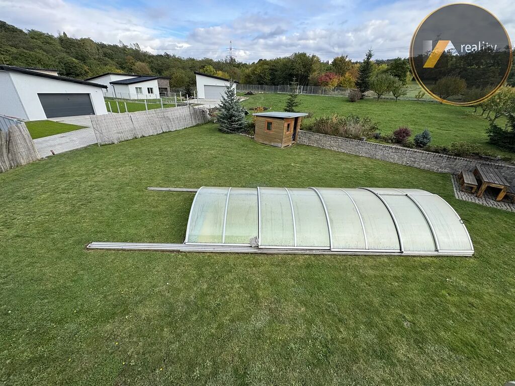 Na udržované zahradě se nachází zastřešený bazén, pergola s venkovní kuchyní a grilem – ideální místo pro letní posezení a rodinné oslavy.